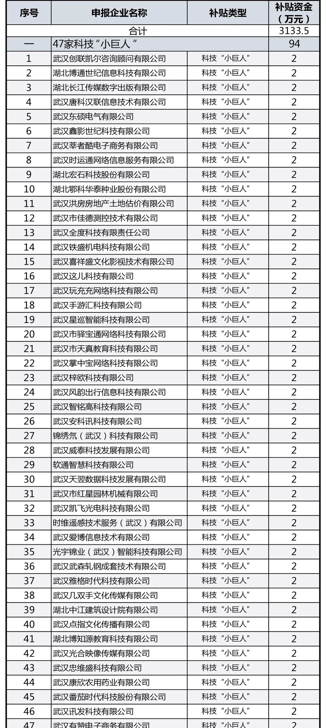 洪山区关于2019年度科技企业梯次培育专项资金结果的公示