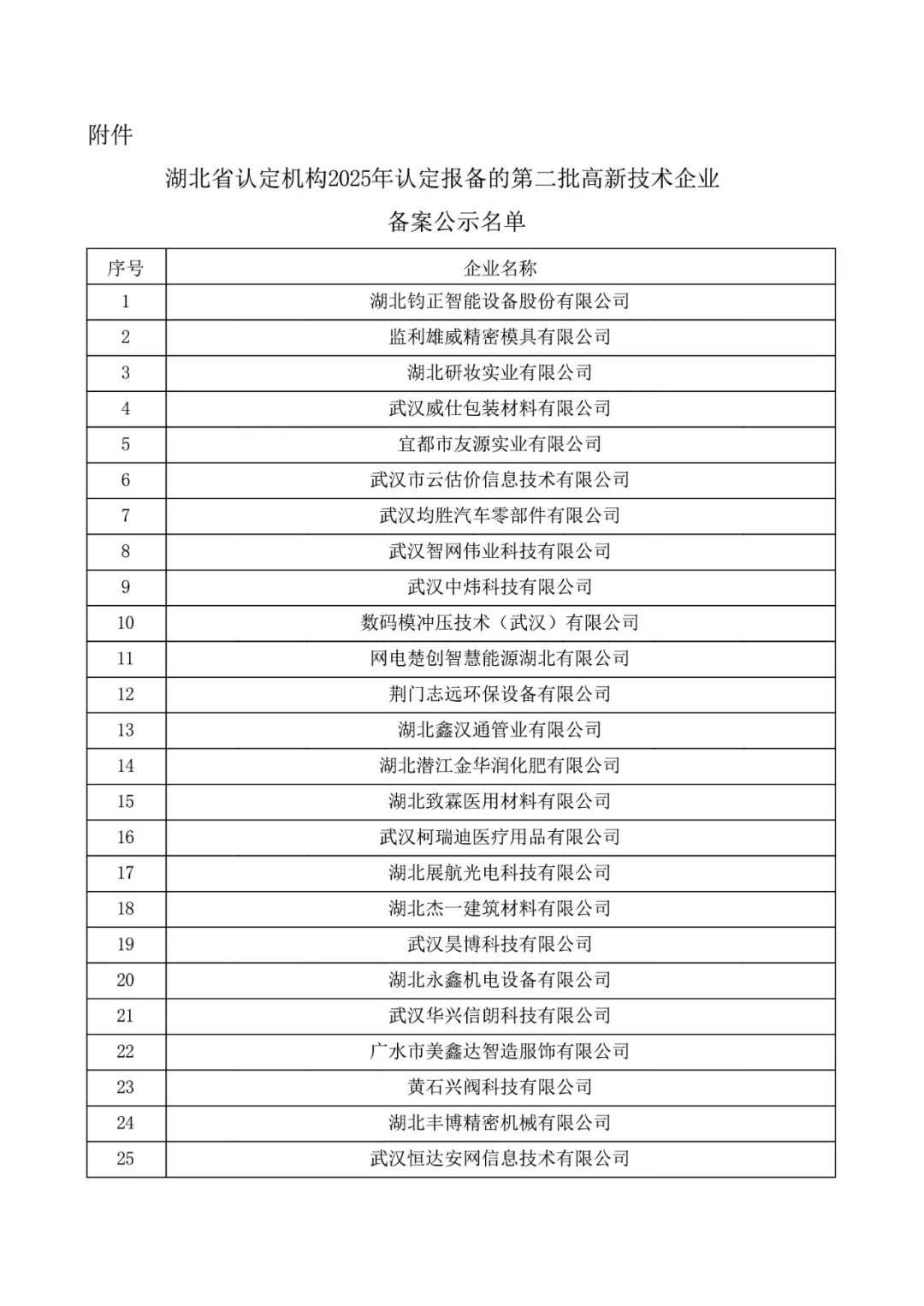 附件:湖北省认定机构2025年认定报备的第二批高新技术企业备案公示名单