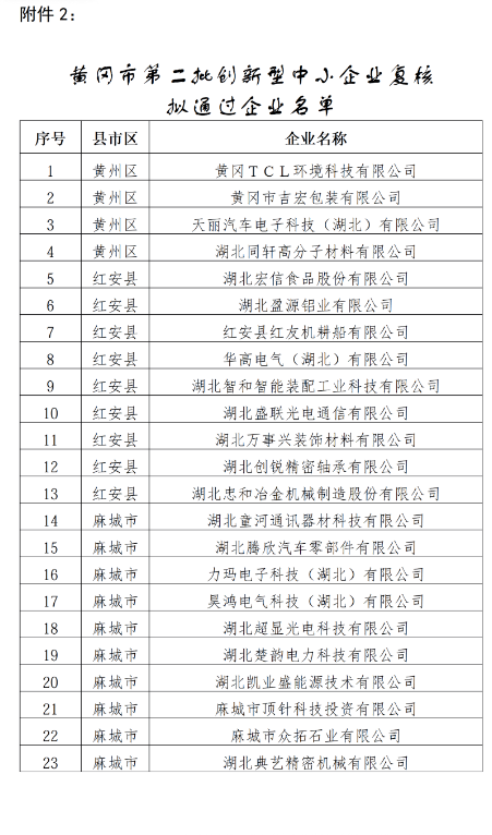 黄冈市丨拟通过第八批创新型中小企业评价和第二批创新型中小企业复核通过企业名单公示