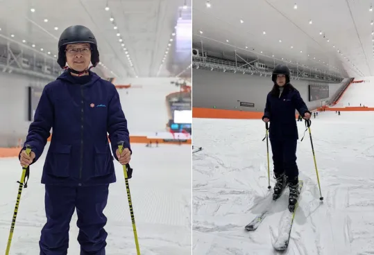 12月10日中午,团建首站在滑雪场正式开启。换上专业雪具后,大家迅速投入体验:滑雪经验丰富的同事主动担当“指导员”,耐心分享平衡控制、转弯刹车等技巧;初次尝试的伙伴相互鼓劲,在一次次练习中突破自我、克服胆怯。雪道上,并肩滑行的身影、摔倒时的及时搀扶、成功后的相互喝彩,让“协作”成为冰雪中最生动的注脚,也让大家在运动中尽情释放压力,全程充满欢声笑语。