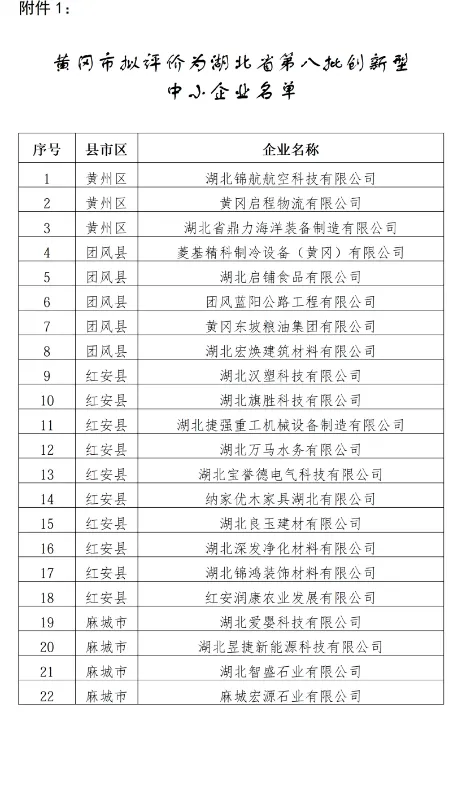 黄冈市丨拟通过第八批创新型中小企业评价和第二批创新型中小企业复核通过企业名单公示