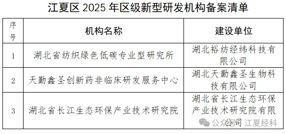 江夏区2025年度区级新型研发机构备案公示