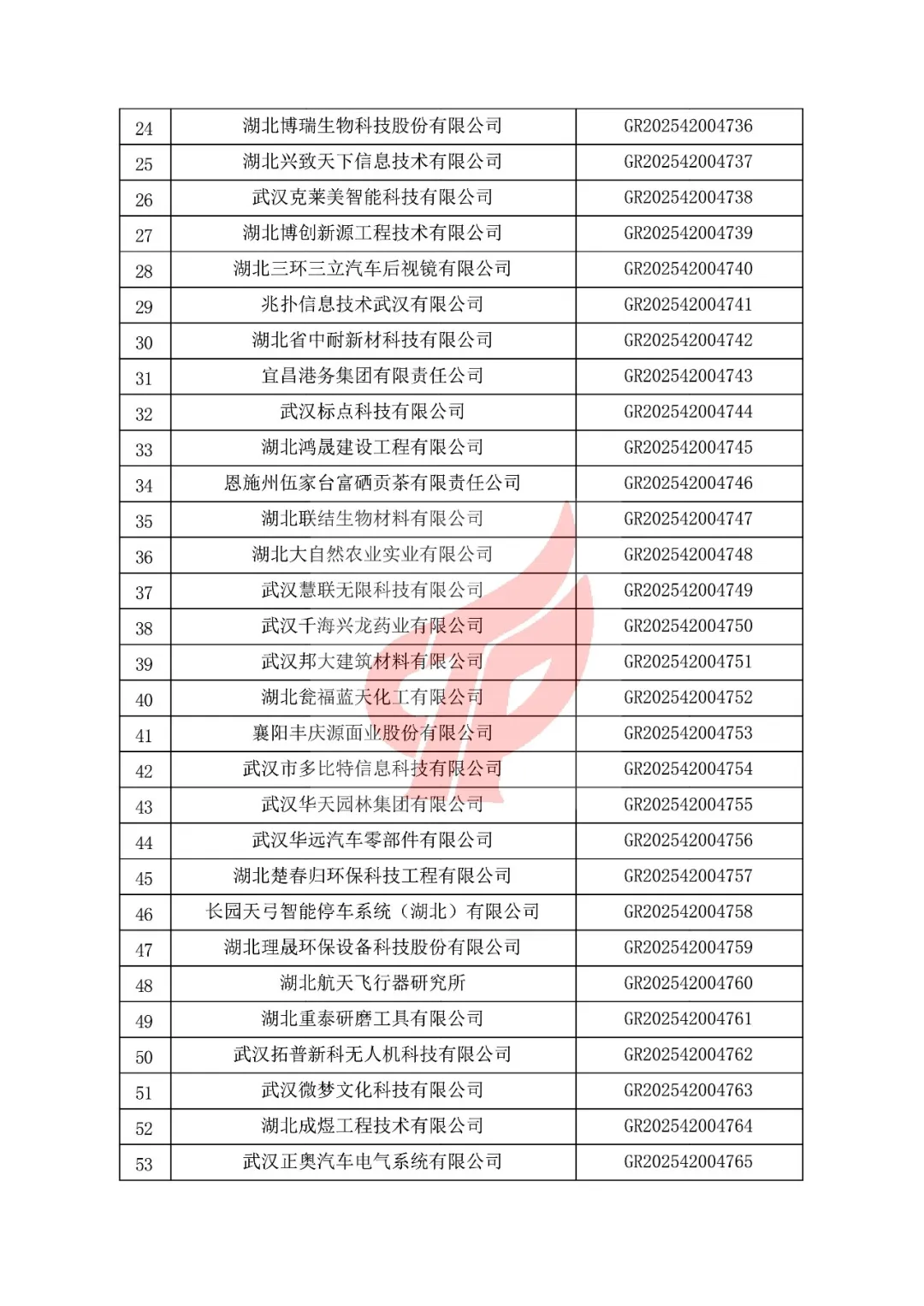 根据《高新技术企业认定管理办法》(国科发火〔2016〕32号)和《高新技术企业认定管理工作指引》(国科发火〔2016〕195号)有关规定,现对湖北省认定机构2025年认定报备的第四批865家高新技术企业备案名单(详见附件)予以公告。
